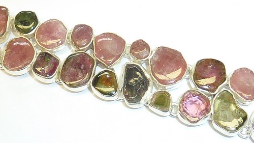 Roze toermalijn, oftewel rubeliet, en als je goed kijkt lijkt zitten er ook een paar watermeloentoermalijntjes tussen ? ja, fantasie heb ik wel!