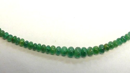 Een prachtig snoertje smaragd. De kralen lopen van klein naar groot en weer terug en dan toch voor dit geld. Dat vind je nergens anders, dus grijpje kans!