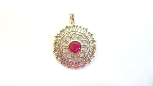 Zilveren hanger met robijn.