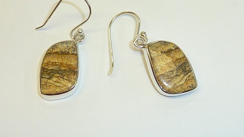 Oorbellen met landschapsjapis, dat zie je niet zo vaak. En dan moet je deze zien: het lijkt wel de Sahara. Vandaar ook dat hij tussen de zandsieraden staat. Lekker dwars, lekker Barrraba.